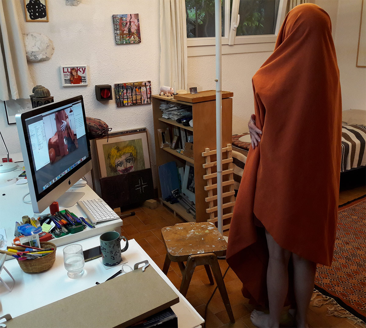 In Utterings, six artists from very different backgrounds gather online and, while blindfolded, engage in a collaborative attempt to go beyond the borders and closures created by languages, opening up and transgressing them in a performance that probes meaning through pre-verbal communication and formerly un-inhabited expressions.